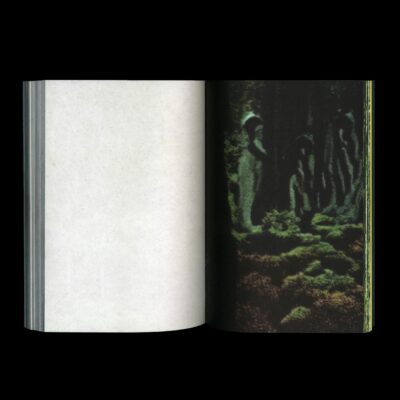 Pour assurer sa survie dans le sauvage, l’oeil humain perçoit plus de nuances de vert que n’importe quelle autre couleur. Aujourd’hui, cet héritage nous accompagne lorsque l’on plonge dans ce monde composé de formes à la grammaire d’une familiarité difforme, où l’incertitude de ce qui est perçu nous suggère de ne tirer aucune conclusion. Il s’agit alors d’évoluer, enveloppés comme nos prédécesseurs, dans cet environnement inhospitalier et enchanteur jusqu’à ce que nous disparaissions à notre tour de la figuration.