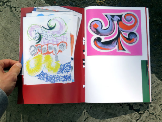 “Pour se désencombrer du poids des mots, des idées et des symboles de l’Histoire de l’art, tous les moyens sont bons. Les croquis s’additionnent avant le choix crucial : une forme est sélectionnée, extraite du carnet, minutieusement reportée sur la surface de la toile. Le mouvement et la couleur s’y épanouissent alors, libérés de la nécessité d’être limpides, évidents.
