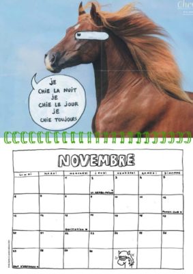 « Calendrier 2023 Passion chevals, c’est un rodéo visuel, c’est une galopade du second degré, c’est un petit trot mais pas trop, c’est un centre équestre du planning, c’est une calèche qui vous emmènera au bout de 2023. »