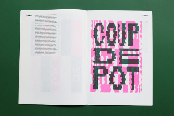 Combiner, combine, combinatoire / Superpositions / « Priorité à la technique » / Qu’est-ce qu’un designer graphique ? / Sens et support / De la contingence / À défaut d’impression : poétique de la macule