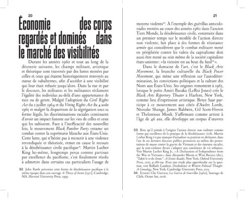 Ces artistes n’opposent pas terme à terme une visualité à une autre, mais cherchent à produire des écarts tactiques et privilégient une mobilité des points de vue, pour permettre à chacune et à chacun de se construire comme sujet.