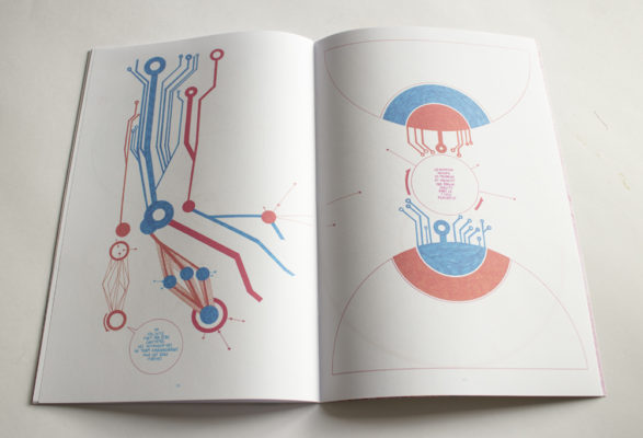 ‘Alam Al-Mithâl est le second chapitre, il nous propulse dans le monde intermédiaire où Flint s’est retrouvé catapulté. En effet, loin de l’envoyer dans le passé, la machine l’a projeté dans l’entre-monde, dans l’interstice indéfini et indicible qui sépare le maintenant du non-maintenant, l’ici du non-ici. Dans cette absence ambiguë de temps et d’espace, il ne cesse de se métamorphoser en lignes indescriptibles qui dessinent et tissent une couture entre cet anti-lieu et l’espace-temps.