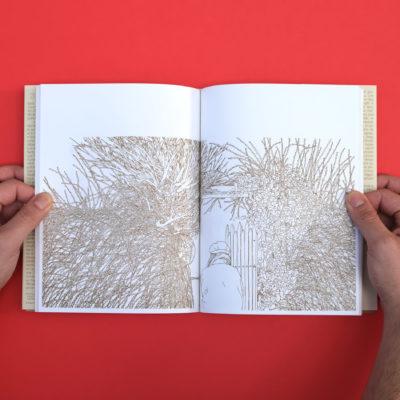 Les trois parties sont travaillées avec une ligne de couleur différente pour chacune. Light Teal, Flat Gold et Ivy. Certaines pages sur un papier presque transparent Japonais IBO sont légèrement teintées de rose et de bleu, comme des voiles. Le livre est relié en dos carré collé, avec une jaquette offset contenant un vernis sélectif.
