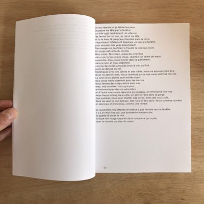 Un hôpital où un corps est connecté à un dispositif médical. Un pré faussement idyllique sous lequel grouillent des câbles. Des rivages où des formes oscillent entre ensevelissement et immersion. Dans Désolation, Verity Spott propose une poésie fantasmagorique entre narration, prose et dialogues. L’expression des sentiments bouleverse les attributions des pronoms personnels et les structures syntaxiques. Des identités changeantes prennent à partie les politiques d’austérité et les voix d’extrême droite. Livre de deuil et d’amour qui frôle la satire, Désolation travaille une écriture hybride où s’entrelacent la poésie lyrique, des images tirées de blockbusters et le langage des démagogues pour contrer les moules qui tenteraient de dicter la forme de nos chagrins.
