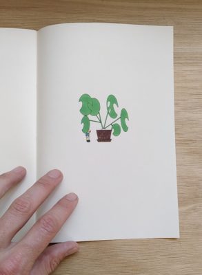 Une moitié BLAH-BLAH-BLAH, des phrases qui se tortillent, machine de guerre à faire danser l’absurde et le sublime. L’autre moitié SPLASH, une cuillère rose, un timbre vert, une fourchette bleue, un bateau blanc.