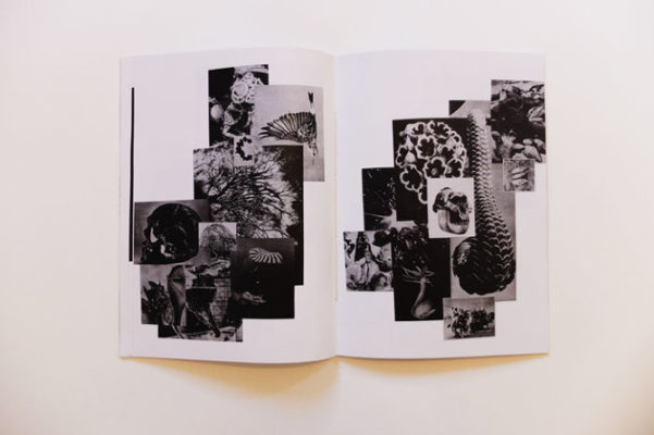 Apparaissent des restes épars et altérés de photographies, cartes, paysages, empreintes, visages, corps et fossiles.