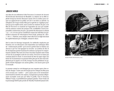La biodiversité cinématographique n’a jamais été aussi riche : parce que la technique le permet, parce que la panique y oblige, le bestiaire s’est étendu, animaux sauvages, de rente ou de compagnie, dans les documentaires et les fictions, à Hollywood, en France et ailleurs. Libérés du carcan de l’anthropomorphisme, reconsidérés par les nouvelles théories animalistes, ils ont cessé de n’être que machines à spectacle ou matière à métaphores. La critique se devait d’accompagner cette apparition de masse, à l’œuvre entre autres chez Steven Spielberg, Alejandro Inarritu, Andrea Arnold ou Alain Guiraudie. Pour retrouver les animaux, il faut revoir leurs films. De L’Odyssée de Pi aux Saisons, de Hatari ! à Star Wars, de Koko le Gorille qui parle à Zootopie, de Petit Paysan à Toni Erdmann, Paterson, Elle… Jungles, abattoirs, océans, parcs à thèmes : ils sont partout, territoires inexplorés des Animal Studies à venir.