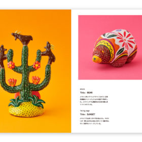 In “OKATAOKA MEETS FOLK ART SERIES”, the illustrator Okataoka visits the world’s FOLK ART. The volume 1 is Mexico. It contains his works; papier-mache, sculpture, pottery and illustrations with motifs of the mexican folk art and landscapes that he met in Mexico.