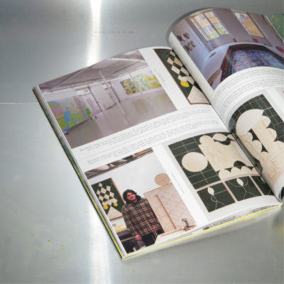 La voiture s’arrête devant un portail métallique noir dans une rue en construction. Le soleil rasant éclaire les bâches de chantier, les tas de gravas et les barrières de cette rue déserte. Il est environ 17 heures lorsque nous arrivons dans un quartier excentré de Fontenay-sous-Bois en banlieue parisienne. Maximilien ouvre le portail et nous invite à traverser la cour, la porte vitrée et à entrer dans son nouvel atelier. Lissana, son assistante, prépare de la glaise colorée dans des bassines. À peine arrivé, il se remet au travail. Il est accroupi en train de tracer au cutter des formes abstraites dans un immense parterre de glaise fraîche étalé au sol et comprimé entre des lattes de bois. Pas de temps à perdre, il ne faut pas que la terre sèche s’il ne veut pas gâcher la plus grosse pièce sur laquelle il travaille. Nous l’observons en silence jusqu’à ce qu’il finisse cette chorégraphie au sol et installe une table sur laquelle nous boirons quelques verres et discuterons pendant plus de deux heures de son travail.