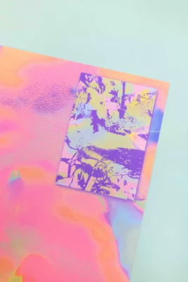 « Pastel Tuning » est une publication qui rend compte d’une résidence du collectif à Fotokino en février 2023. Durant 15 jours, les trois graphistes ont investit l’espace du lieu d’exposition en fabricant une immense boîte de peinture (en carton), semblable à celles qui peuvent exister chez les carrossiers ou les ateliers de peinture industrielle. Et l’ont habillée de couleurs appliquées au pistolet, dessinant ainsi un paysage de couleur invitant les visiteurs à la contemplation, et à traverser cet environnement comme on traverserait la matière même de l’une de leurs affiches.