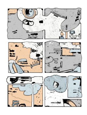 Sur la base de plans architecturaux et topographiques fantomatiques et éclatés, elle articule ses “asemic writing” (poésie concrète) et ses enchevêtrements d’espaces alambiqués en une explosion visuelle déstabilisant toutes les habitudes de lecture convenues, entérinant définitivement la bande dessinée comme l’art idéal aux développements rhizomatiques.