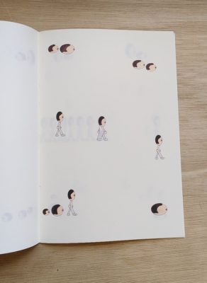 Une moitié BLAH-BLAH-BLAH, des phrases qui se tortillent, machine de guerre à faire danser l’absurde et le sublime. L’autre moitié SPLASH, une cuillère rose, un timbre vert, une fourchette bleue, un bateau blanc.