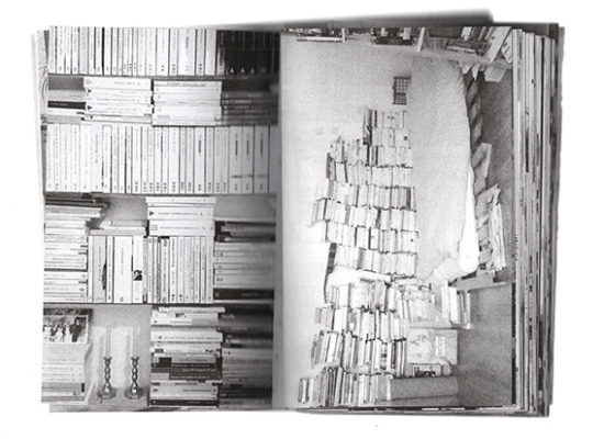 Un rapport intime entre son fondateur et ses livres se construit au fur et à mesure de l’accumulation. Ainsi, un seul livre par terre est déjà comme une première pierre, l’idée que d’autres vont s’y joindre, d’une façon ou d’une autre, et qu’un semblant d’édifice sera là. »