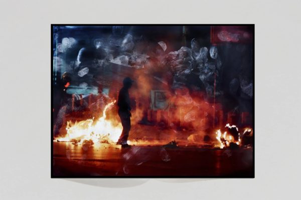 Le projet Surface Tension de Tabitha Soren est réalisé en filmant la crasse et les débris qui s’accumulent sur son iPad. Les images d’arrière-plan sont appropriées de ses divers appareils via les médias sociaux, des images qui lui sont envoyées par SMS et de son historique Web. Soren crée les images sur la culture numérique avec une caméra analogique grand format. Les gestes vigoureux et expressifs à la surface de l’image reflètent le conflit entre la réalité et la fiction et entre nos vies incarnées et nos vies médiatisées en ligne. Les photographies mettent en évidence ce que nous essayons normalement de regarder au-delà et d’ignorer sur nos écrans. Les images montrent le monde extérieur dystopique tourbillonnant avec les empreintes digitales et les taches graisseuses de notre moi incarné. Les marques humaines semblent en contradiction avec le détachement glacial et l’objectivité des informations qui nous parviennent, sans relâche. Dans ce projet, le spectateur est obligé de voir un objet du quotidien d’une manière qu’il ne voit généralement pas. Le livre est accompagné d’un essai de Jia Tolentino, rédacteur pour le New Yorker et auteur de la collection d’essais Trick Mirror : Reflections on Self-Delusion.