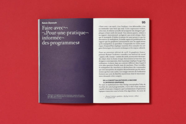 Largement tributaire des possibilités qu’offrent la photographie, la programmation, les procédés d’impression, de diffusion, de reproduction, notre environnement visuel est traversé de part en part par la technique. Pourtant, ces opérations sont bien souvent maintenues dans l’ombre de questions plus nobles portant sur les graphistes, leurs démarches et les formes qu’ils produisent. Le rôle historique et opératoire de la technique ne semble pas encore avoir été étudié dans le champ du design graphique avec autant d’assiduité que dans d’autres domaines.