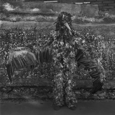 Le livre est construit sur un rythme alternant les photographies noir et blanc (réalisées au moyen format en argentique) de paysages embrumés et d’apparitions soudaines. Ces mascarades ont traversé les siècles et les guerres en se transformant peu. Elles peuvent être regardées maintenant comme la résurgence d’un monde animiste précédant l’expansion chrétienne. On pourrait presque dire que ces costumes incarnent la terre païenne, en opposition au ciel divin : toutes les nuances sauvages sont réinterprétées dans les parures animales, végétales, ou chimériques.