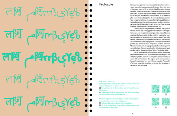 Ce livre prolonge un travail mené par l’artiste Marianne Mispelaëre dans un collège et des lycées à Marseille entre 2020 et 2022. Il explore différentes relations qu’entretiennent nos langues – lues, parlées, comprises, environnantes – avec la langue française, avec nos histoires et nos identités, à l’école et dans l’ensemble des échanges sociaux. Polyglottes, allophones, né·es ici ou ailleurs, les élèves, dans leur grande diversité, ont participé à des ateliers imaginés par l’artiste interrogeant la valeur des langues qui nous traversent – ce qu’une langue fait à, ce qu’une langue dit de notre perception et notre compréhension du monde.