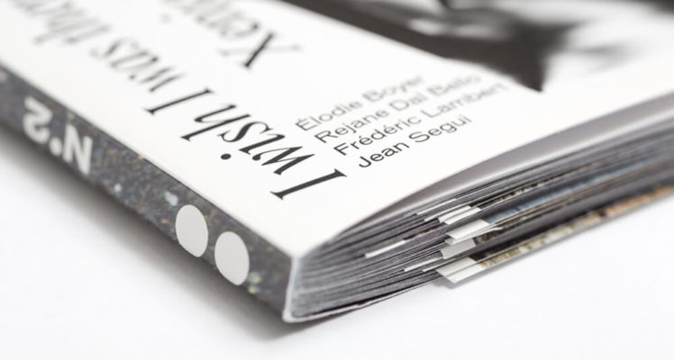 Quand nous avons créé le premier UPO, nous pensions que l’avenir nous offrirait l’embarras du choix. En réalité, nous sommes tombés dans un heureux piège : un UPO est un casse-tête ! Nous avons donc cherché. Nous pensions avoir trouvé un très beau projet photographique, là, tout près, sur les bords de Seine. Alors nous avons conçu l’UPO 2, presque comme vous l’avez sous les yeux aujourd’hui. Une trentaine de photographies insérées de manière aléatoire dans les doubles pages. Ainsi, chaque UPO est unique et les photographies sont en majesté. Une belle rivière noire traverse chaque double page, sensuelle et sombre, imprimée sur un papier simili bible ; la rivière s’agite et embarque tout sur son passage, y compris la typographie, tandis que les textes – qu’ils soient essai ou poème – sont sobres et petits, dispersés à la marge, découpés en morceaux, pour apprécier toute leur saveur. Mais voilà, coup de théâtre, la photographe n’a pas voulu de notre rivière noire. Trop présente, trop sombre, trop en lutte avec son travail. Comme nous étions aimantés par cette rivière, nous avons fait l’inverse : au lieu de créer du design graphique pour accompagner un projet artistique, nous sommes partis à la recherche de photographies qui pourraient fonctionner avec le design de Rejane Dal Bello, magnétique et orphelin.
